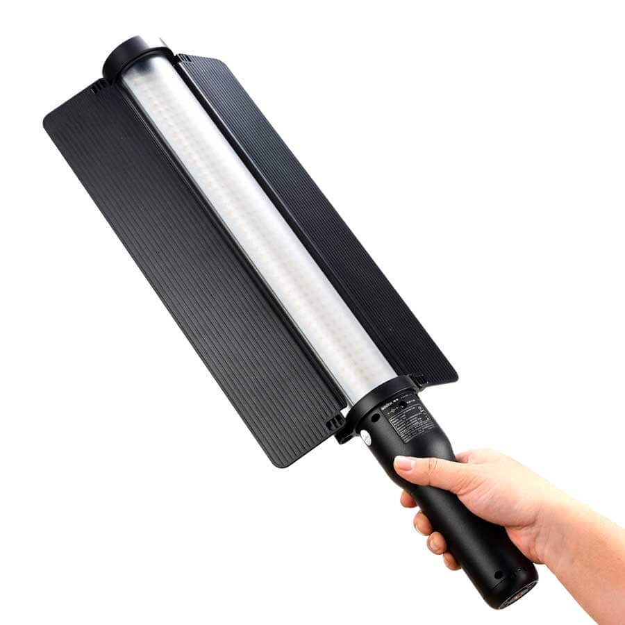 O bastão de LED LC500 Bicolor da Godox, parece um sabre de luz ou varinha e sua "mágica”, é sua versatilidade e puro prazer de uso. Mede 56.5 cm de comprimento com um diâmetro de 5.6 cm e seus 516 LEDs, possuem uma temperatura de cor de 5600K ou 3300K para atender às condições ambientais, combinar com outros iluminadores ou apenas para efeitos criativos. A intensidade da luz também é variável, de 10 a 100% para atender aos requisitos de iluminação do seu assunto. O bastão de luz emite até 1200 lux a 0.5 cm e tem uma classificação CRI/TLCI de 95 para precisão de cor. Embora sua saída seja omnidirecional, pode ser moldada e dirigida pelos barndoors inclusos.
