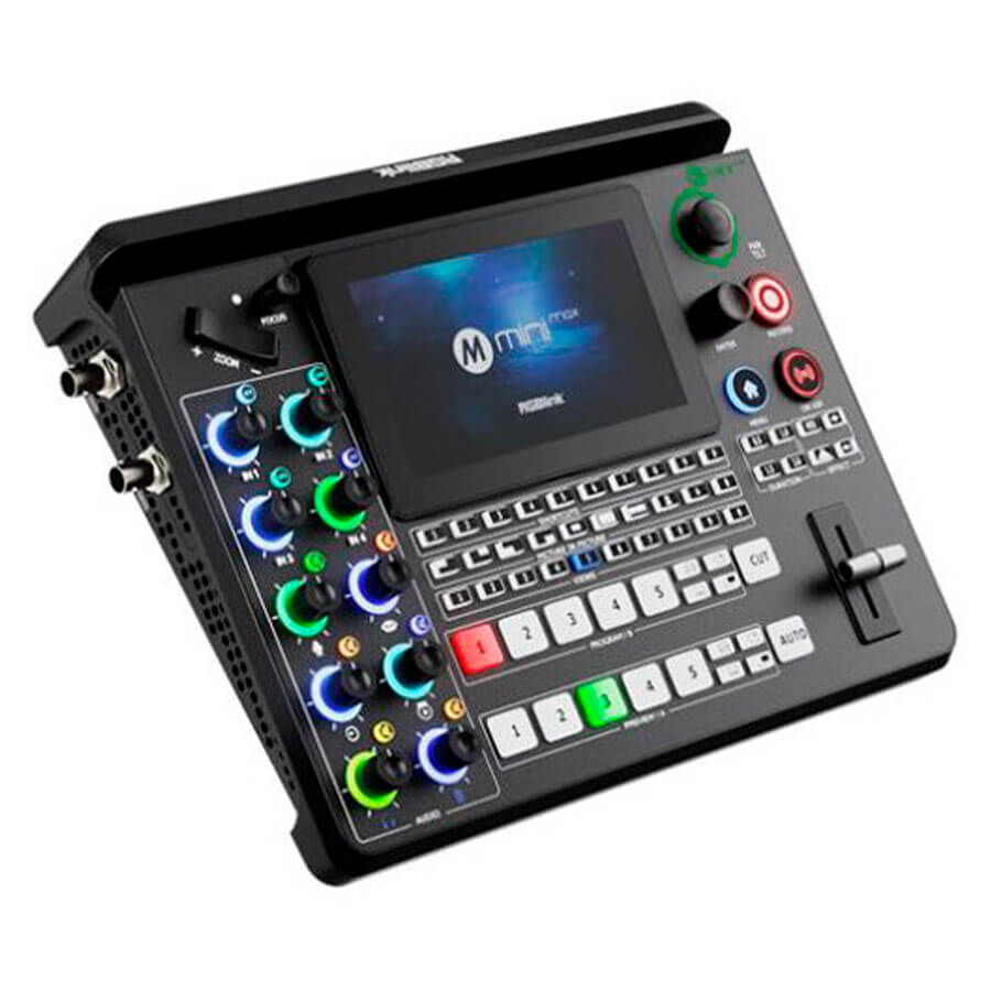 Apesar do seu tamanho pequeno, o mini-max oferece recursos profissionais, incluindo controle de saída dinâmico, redução de ruído de áudio e controle de câmera PTZ - tornando-o ideal tanto para produções ao vivo quanto para fluxos de trabalho remotos.